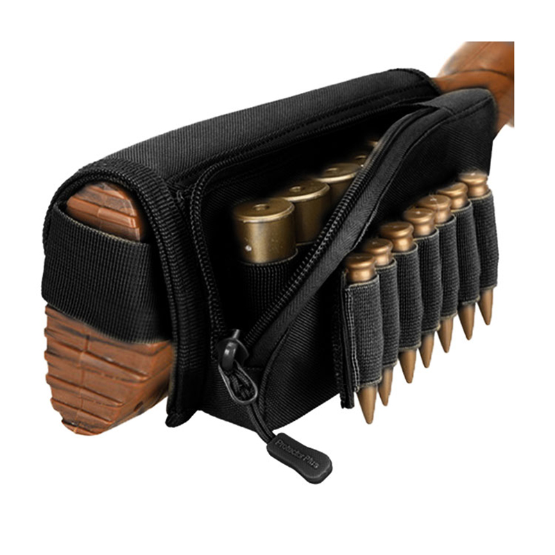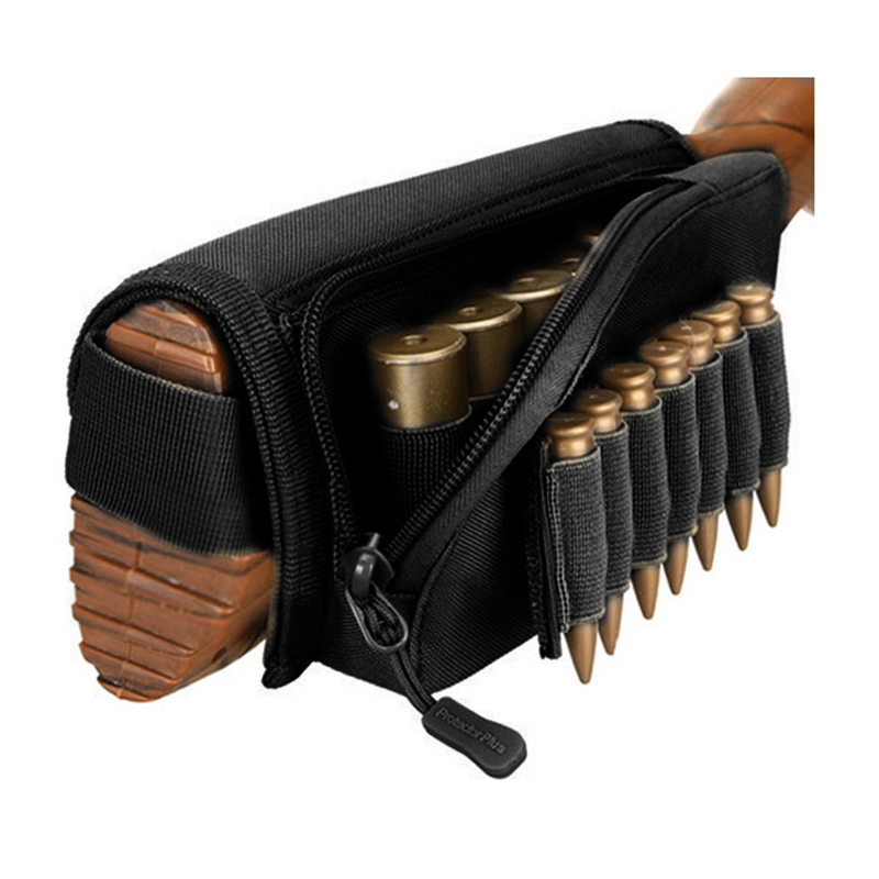 బట్స్టాక్ చీక్ రెస్ట్ మందు సామగ్రి సరఫరా హోల్డర్ సర్దుబాటు చేయగల షెల్ హోల్డర్ హంటింగ్ క్యారియర్ షాట్గన్ (5 రౌండ్లు) మరియు ఒక రైఫిల్ (7 రౌండ్లు) కోసం కుడి చేతితో కూడిన క్విక్ డిటాచ్ బుల్లెట్ బ్యాగ్లు.2మ్యాజిక్ స్టిక్కర్ జతచేయబడిన మందు సామగ్రి సరఫరా సాగే బ్యాండ్లు, 5 స్లాట్లతో ఉన్న హోల్డర్ జిప్పర్డ్ యుటిలిటీ పర్సు లోపల షాట్గన్ షెల్ కోసం, 7 స్లాట్లు ఉన్న హోల్డర్ బయట రైఫిల్ బుల్లెట్ల కోసం. ఒక షాట్గన్ (5 రౌండ్లు) మరియు ఒక రైఫిల్ (7 రౌండ్లు) మార్చుకోగలిగిన షెల్/కాట్రిడ్జ్ హోల్డర్తో వస్తుంది.
