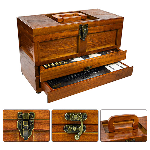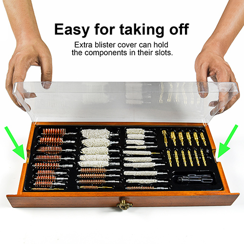 గన్ రెస్ట్తో డీలక్స్ చెక్క కేస్ యూనివర్సల్ గన్ క్లీనింగ్ కిట్
