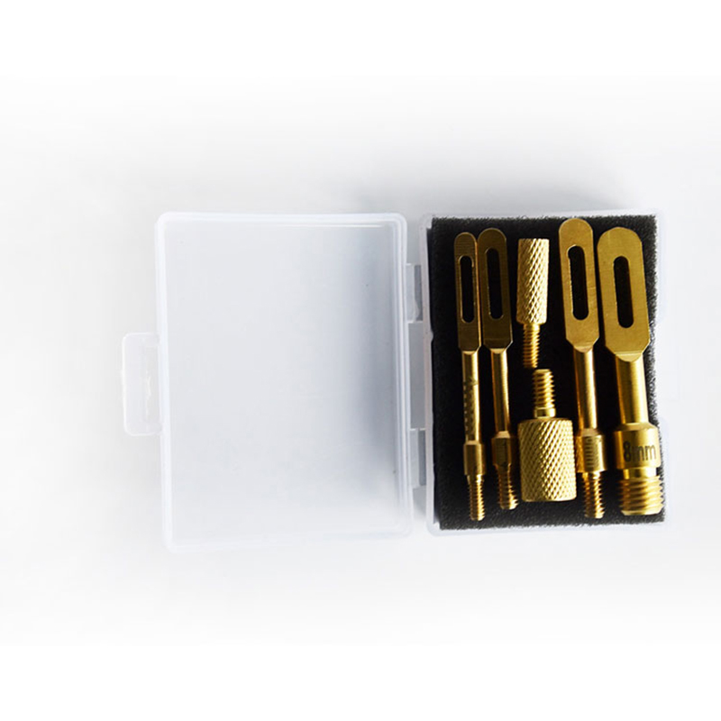 ● 4 ప్యాచ్ హోల్డర్లు : 4మి.మీ పురుషులలో 5-40, .177-.223 రైఫిల్స్కు సరిపోతుంది; 5 మిమీ పురుషులలో 8-32 , .223-.270 క్యాలరీలకు సరిపోతుంది. రైఫిల్స్; పురుషులలో 6mm 5-40 ,రైఫిల్స్కు సరిపోతుంది .270-.357cal, హ్యాండ్గన్లు .357-.45cal.; 8మిమీ పురుషుడు 5/16-24, .357cal నుండి అన్ని షాట్గన్ గేజ్లు మరియు పిస్టల్లకు సరిపోతుంది. మరియు పైకి.