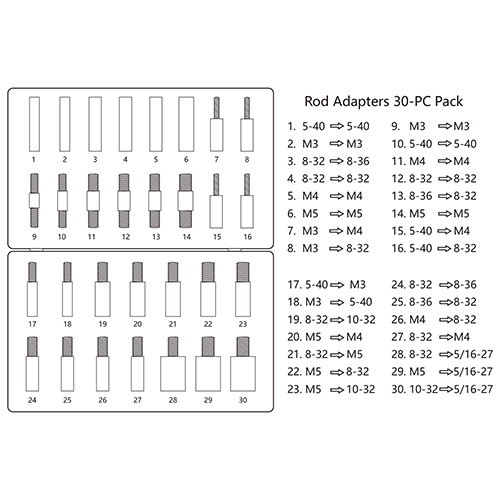 గన్ క్లీనింగ్ రాడ్ ఫిట్టింగ్ అడాప్టర్లు 30 PCs ప్యాక్ 5-40 8-32 10-32 5/16-27 M3 M4 M5 థ్రెడ్లు మగ మరియు ఆడ రాడ్ కనెక్టర్