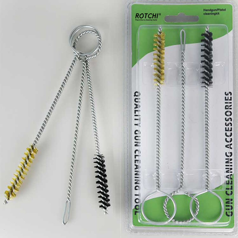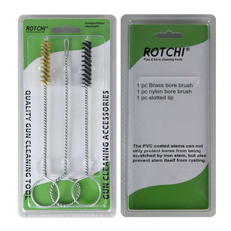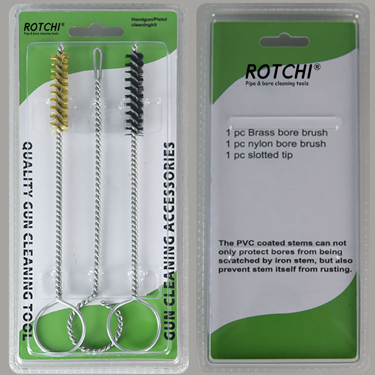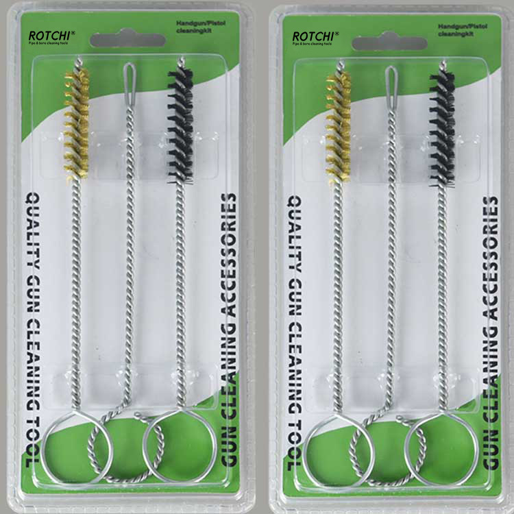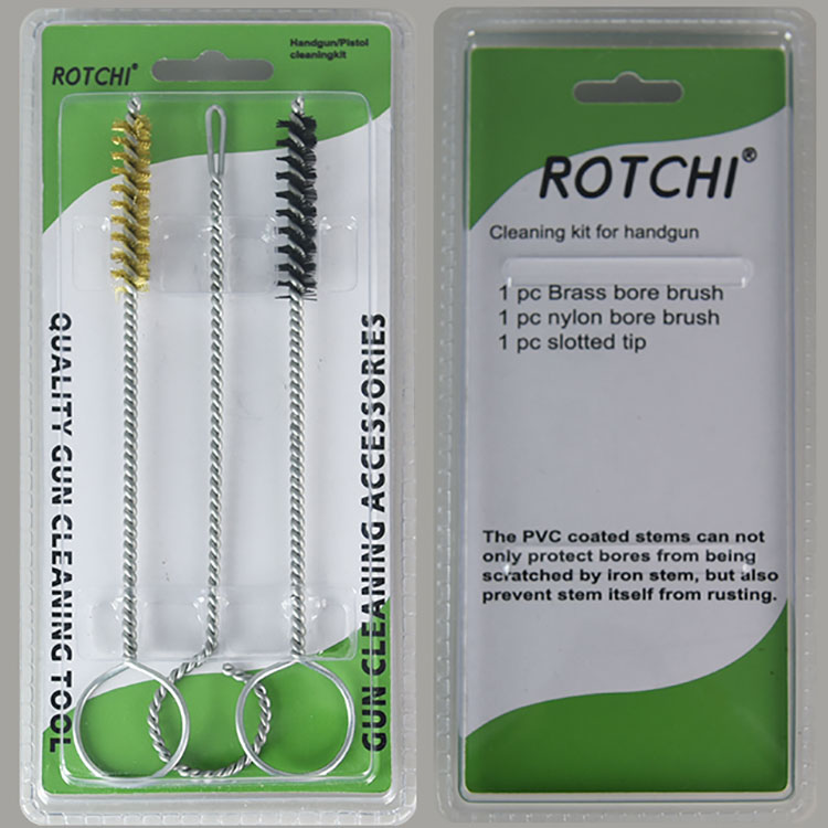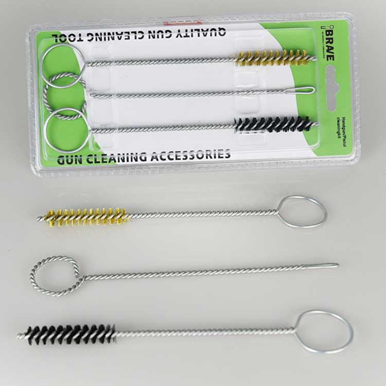 3 pcs సెట్హాండ్గన్ క్లీయింగ్ కిట్, డబుల్ బ్లిస్టర్లో ప్యాక్ చేయబడింది. ఒక బ్రాస్ బోర్ క్లీనింగ్ బ్రష్, ఒక నైలాన్ బోర్ క్లీనింగ్ బ్రష్ మరియు ఒక స్లాట్డ్ ప్యాచ్ హోల్డర్. సులభ మరియు సమర్థవంతమైన.