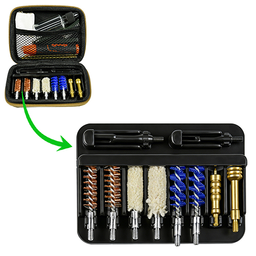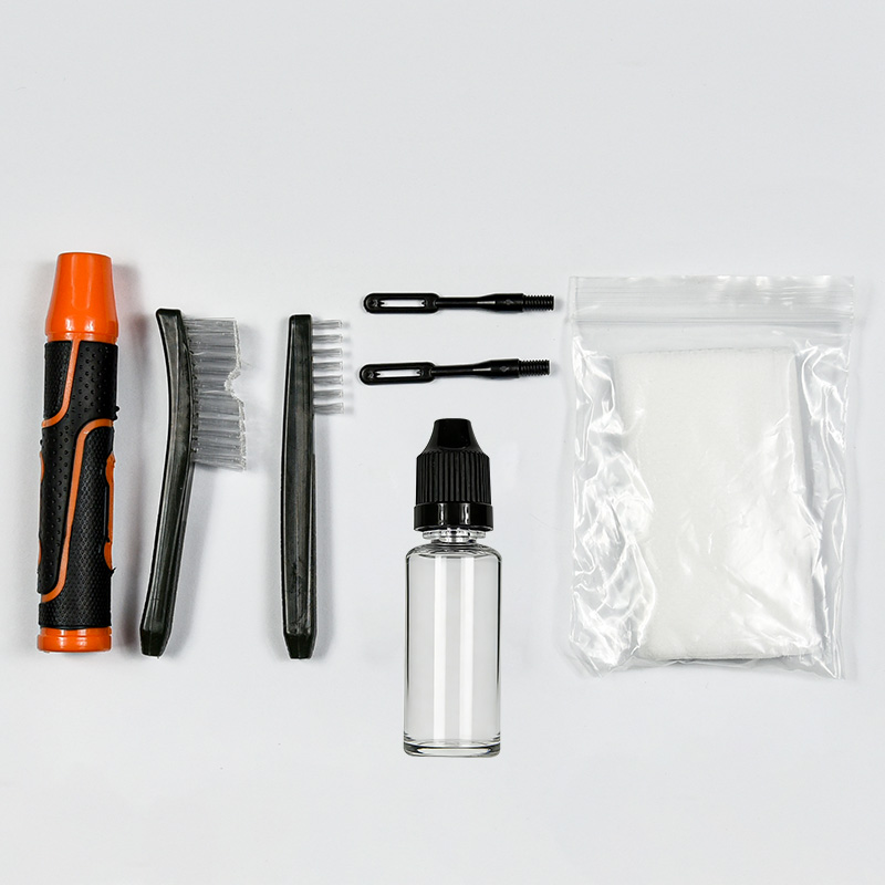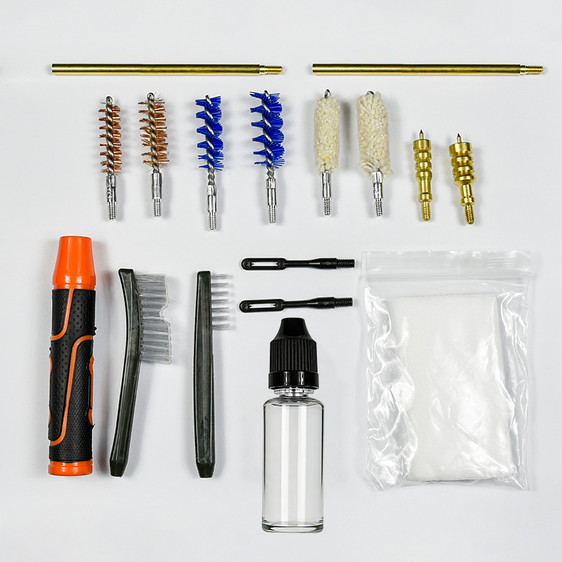 హ్యాండ్గన్ క్లీనింగ్ కిట్లో 2 పరిమాణాలు ఉంటాయి (9 మిమీ & .45 క్యాలరీలు.). OX గుడ్డ పూత జిప్తో PVC కేసు. ఇత్తడి బ్రష్లు, కాటన్ మాప్స్, నైలాన్ బ్రష్లు, ఇత్తడి జాగ్లు, 2 రాడ్లు. ఎంపికల కోసం ఇసుక మరియు నలుపు రంగు.