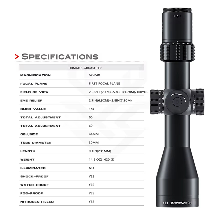 HD MAX 6-24X44 SF FFP HD హై లెన్స్ హంటింగ్ మోనోక్యులర్ టెలిస్కోప్ హోల్సేల్