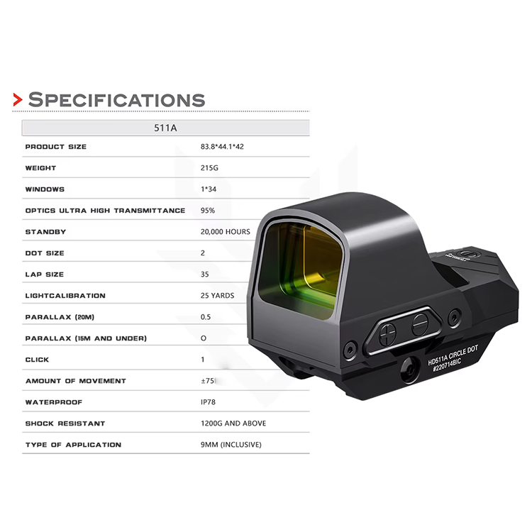 HD511A కాంపాక్ట్ ఆప్టికల్ హంటింగ్ రెడ్ డాట్ సైట్ పెద్ద మొత్తంలో హోల్సేల్ కొనుగోలు కోసం అందుబాటులో ఉంది