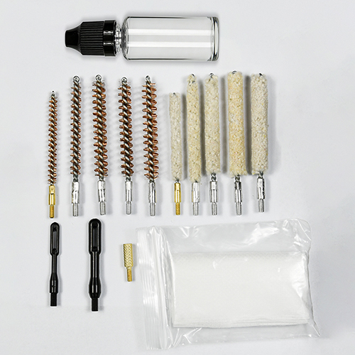 రైఫిల్ క్లీనింగ్ కిట్లో 5 సైజులు (.177, .22, .243, .27, .30 క్యాలరీలు), ఇత్తడి బ్రష్లు ఉంటాయి.