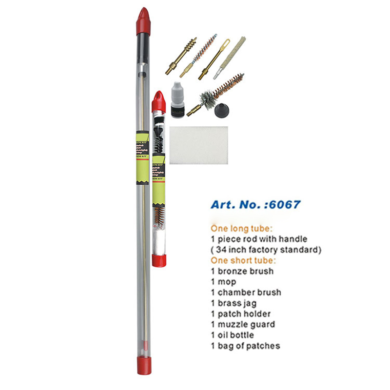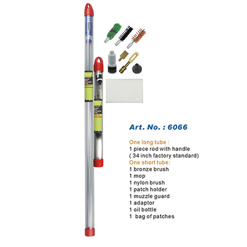 ట్యూబ్ ప్యాక్డ్ గన్ క్లీనింగ్ కిట్ అనేక ప్రయోజనాలను కలిగి ఉంది: తిరిగే అల్యూమినియం హ్యాండిల్తో ఒక ముక్క పొడవైన రాడ్, కటింగ్ లేదు; వివిధ బ్రష్లు మరియు ఉపకరణాలు; పోర్టబుల్ లాంగ్ ట్యూబ్లో ప్యాక్ చేయబడింది. తుపాకీని శుభ్రపరచడానికి అధిక అవసరాలు ఉన్న వినియోగదారులకు, ఇది మంచి ఎంపిక.