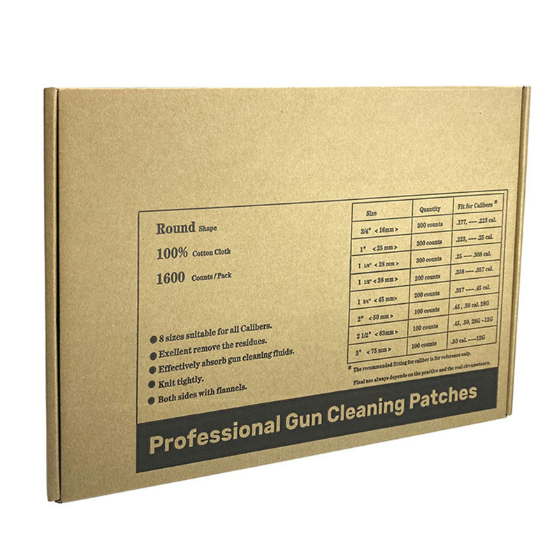 గన్ క్లీనింగ్ ప్యాచ్ల కిట్ కాటన్ ఫ్లాన్నెల్ స్క్వేర్/రౌండ్ 8 పరిమాణాలు అన్ని కాలిబర్ల కోసం 1 యూనివర్సల్ ప్యాక్లో రైఫిల్స్ పిస్టల్స్ హ్యాండ్గన్లు షాట్గన్లు ఎయిర్ గన్స్