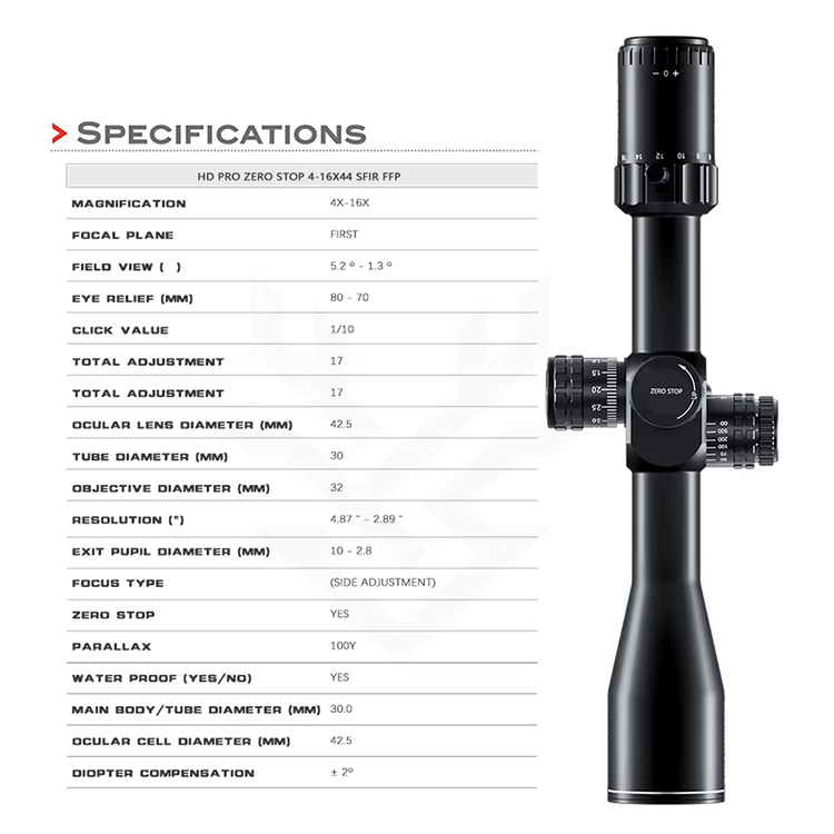 ZERO STOP 4-16X44 SFIR FFP-A 30MM వ్యాసం HD కాంతి-ప్రసారం జీరో స్టాప్ హంటింగ్ స్కోప్ Ffp